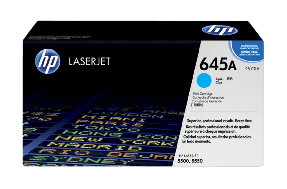 HP 645A LaserJet Toner Cartridge, cyan, 12,000 pages